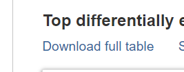 Click on Download full table if you want to download the whole data table for further analysis (not covered in this course). This full data table will contain the results for all the thousands of measured genes, not just the top 250 most differentially expressed ones.